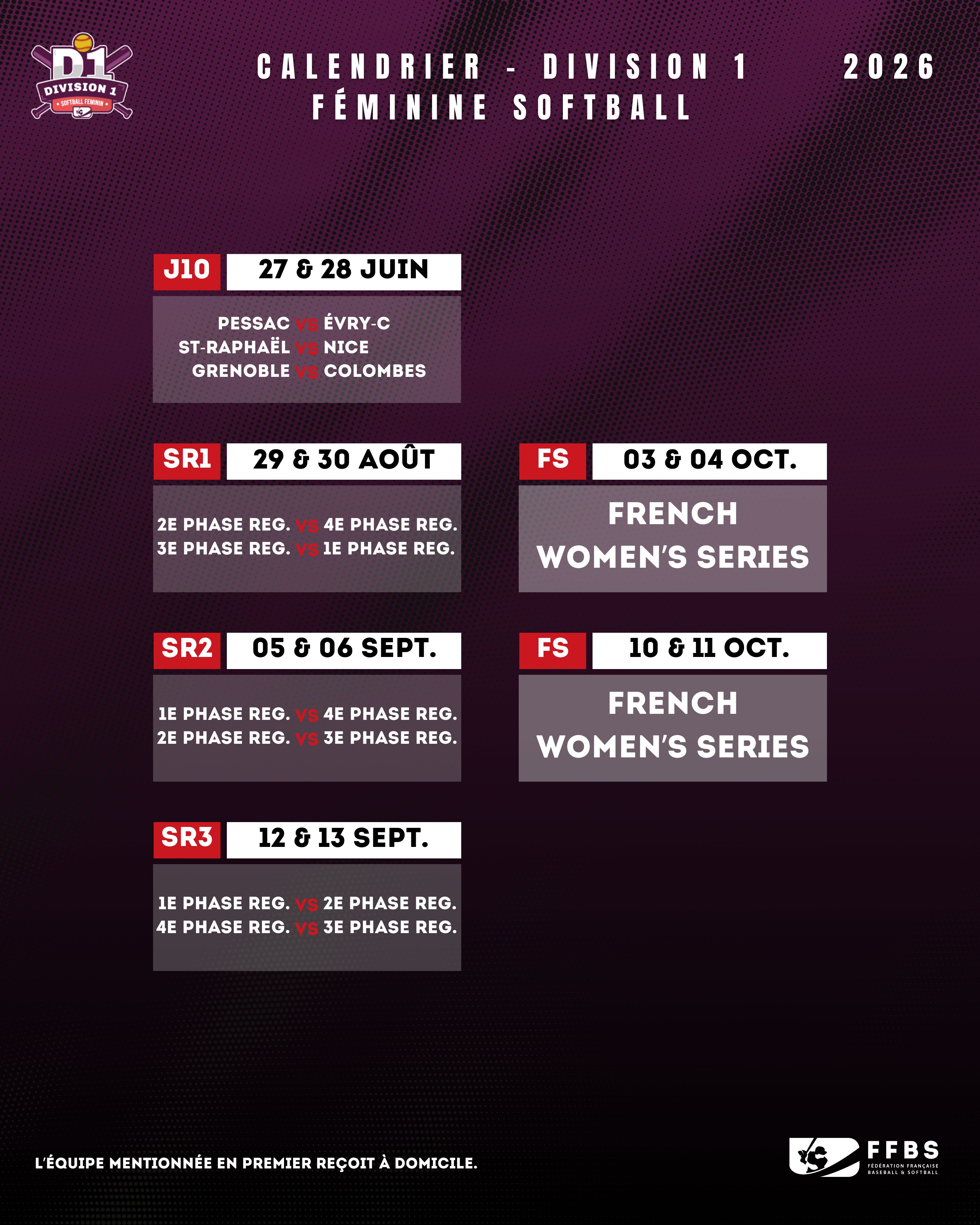 La Commission Fédérale Sportive de la Fédération Française de Baseball et Softball a annoncé le calendrier pour la saison 2026. L’Opening day aura lieu le 22 mars 2026 sur les terrains de Division 1 Féminine Softball.