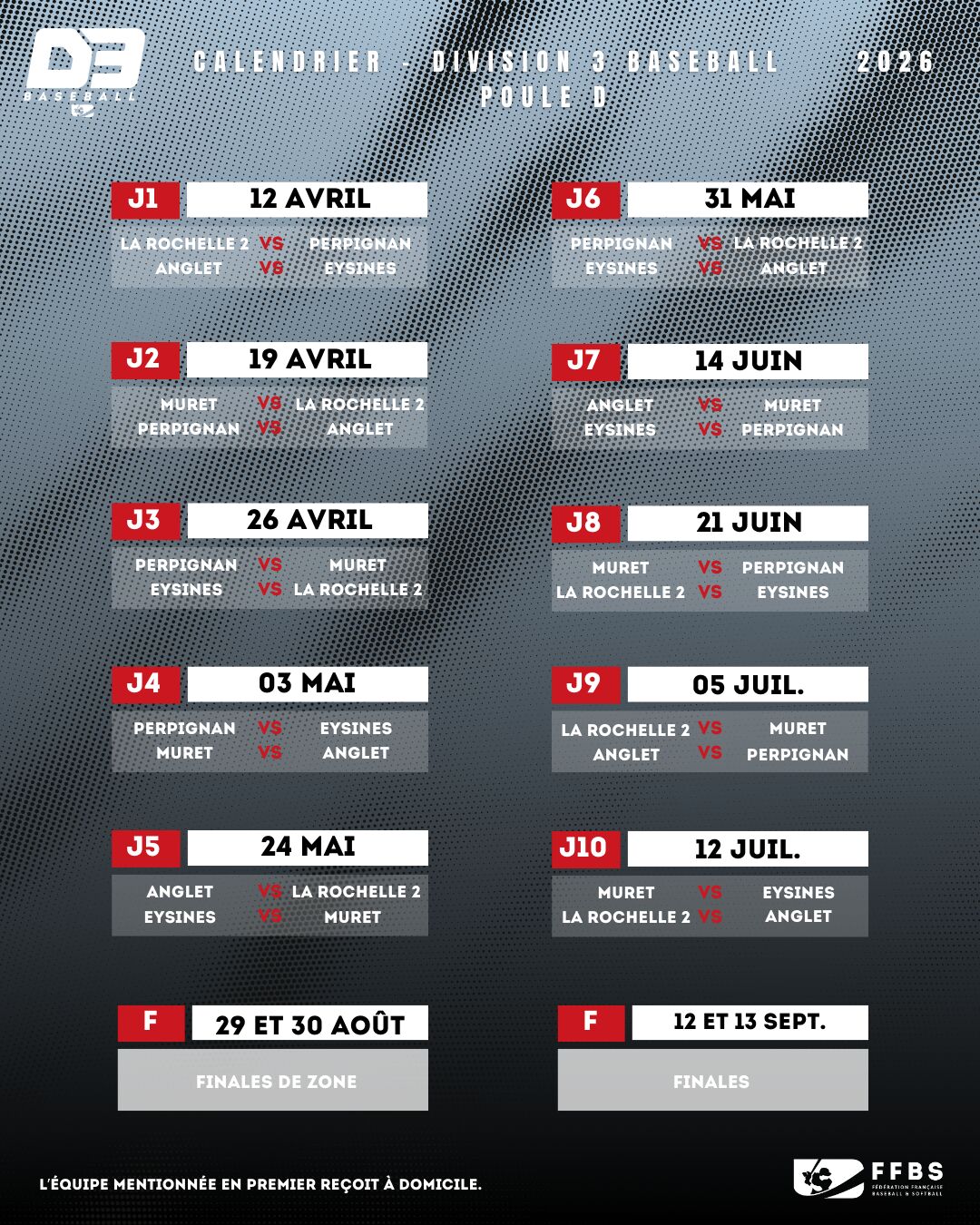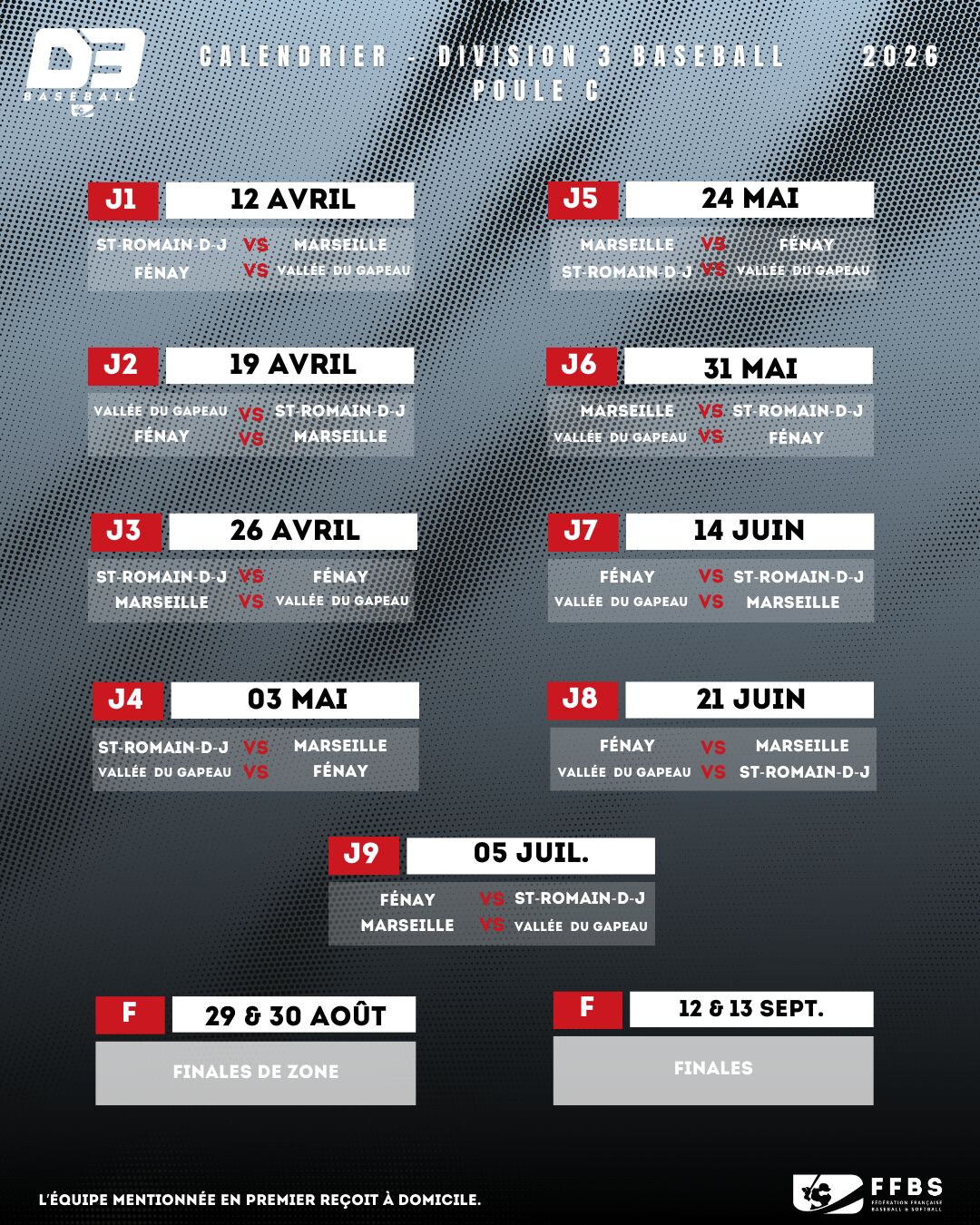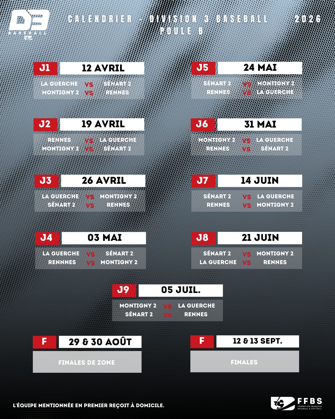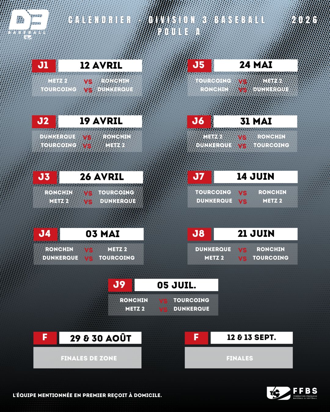 La Commission Fédérale Sportive de la Fédération Française de Baseball et Softball a annoncé le calendrier pour la saison 2026. L’Opening day aura lieu le 12 avril 2026 sur les terrains de Division 3 Baseball.