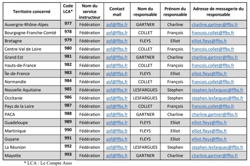 Pour toute question merci de vous rapprocher de votre référent régional et/ou d’envoyer un e-mail à psf@ffbs.fr.