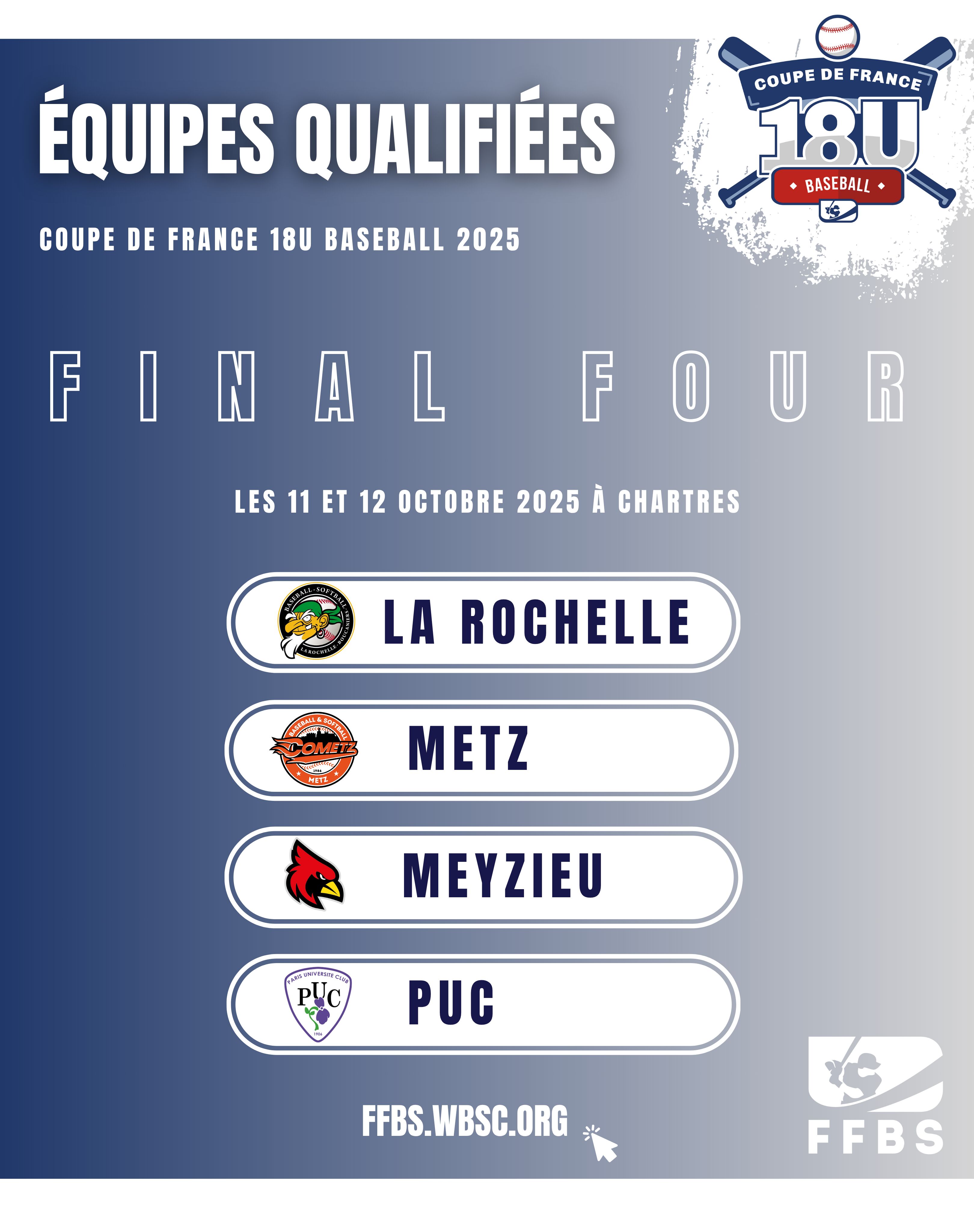 Le Championnat de France 18U de Baseball 2025 connaîtra son dénouement ce week-end à Chartres, avec la tenue du Final 4, qui réunira les quatre équipes qualifiées pour deux jours de compétition intense.