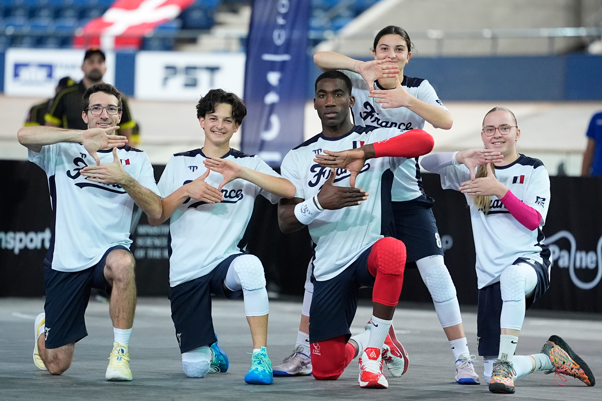 Nathan CREGUT, Jade AUBARD COJAN, Léna SELLAM, Ambre BROUARD et Omar DIODENE PACHECO ont multiplié les enchaînements offensifs de qualité, marquant 5 points dès la première manche puis 8 lors de la deuxième. Implacables en défense, les Bleus n’ont concédé aucun point et ont conclu la rencontre sur un retentissant 16–0.