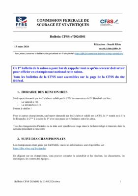 Accueil - Commission Fédérale Scorage et Statistiques - Bulletin CFSS 2026B01 du 15.03.2026