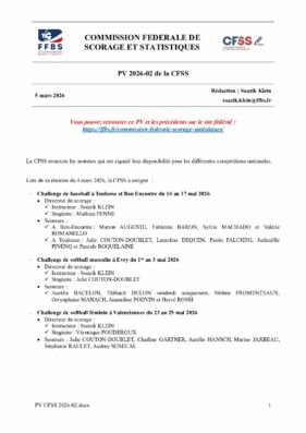Accueil - Commission Fédérale Scorage et Statistiques - PV CFSS 2026-02