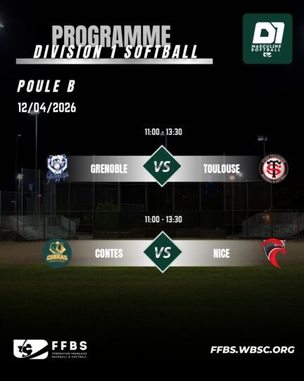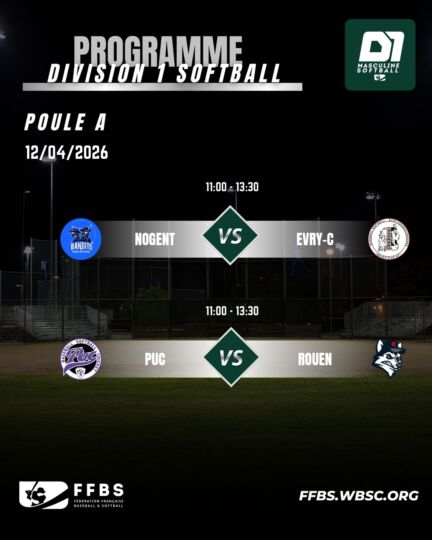 La Division 1 Softball masculin poursuit sa saison avec une deuxième journée structurante. Entre leaders à confirmer et premières réactions attendues, les enjeux sont déjà présents dans les deux poules.