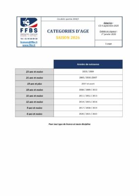 Accueil - FEDERATION - Informations licences - 1s.Catégories d’âge 2026