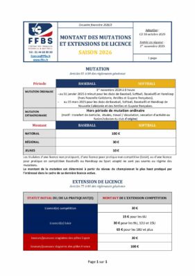 Accueil - FEDERATION - Informations licences - 2f.Montant mutations extensions licences 2026 – CD 04.09.2025