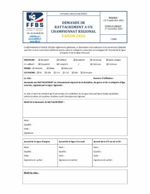 Accueil - FEDERATION - Textes officiels - 3a. Formulaire rattachement à un championnat régional – CD 04.09.2025