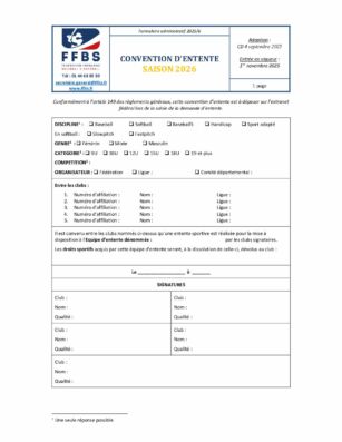 Accueil - FEDERATION - Textes officiels - 6a. Formulaire convention entente – CD 04.09.2025