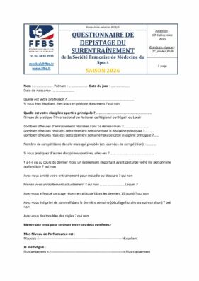 Accueil - FEDERATION - Textes officiels - Questionnaire de dépistage du surentrainement 2026