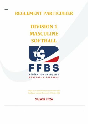 Accueil - FEDERATION - Textes officiels - RP Division 1 Masculine Sotfball – saison 2026 – CD 19.02.2026
