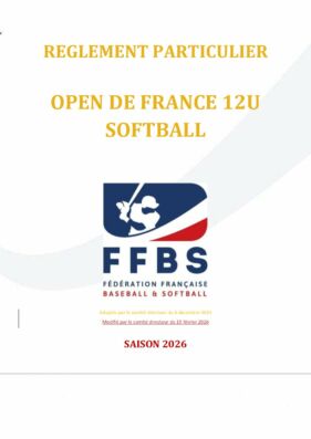 Accueil - FEDERATION - Textes officiels - RP ODF 12U Softball Saison 2026 – CD 19.02.2026