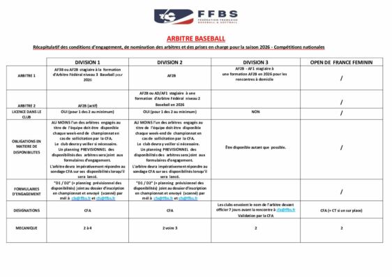 ARBITRE BASEBALL 2026 – COMPETITIONS NATIONALES