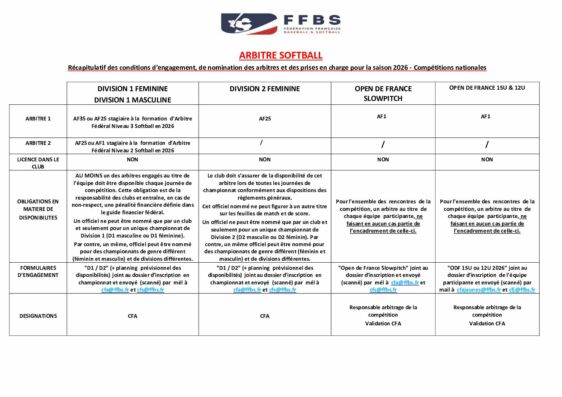 ARBITRE SOFTBALL 2026 – COMPETITIONS NATIONALES