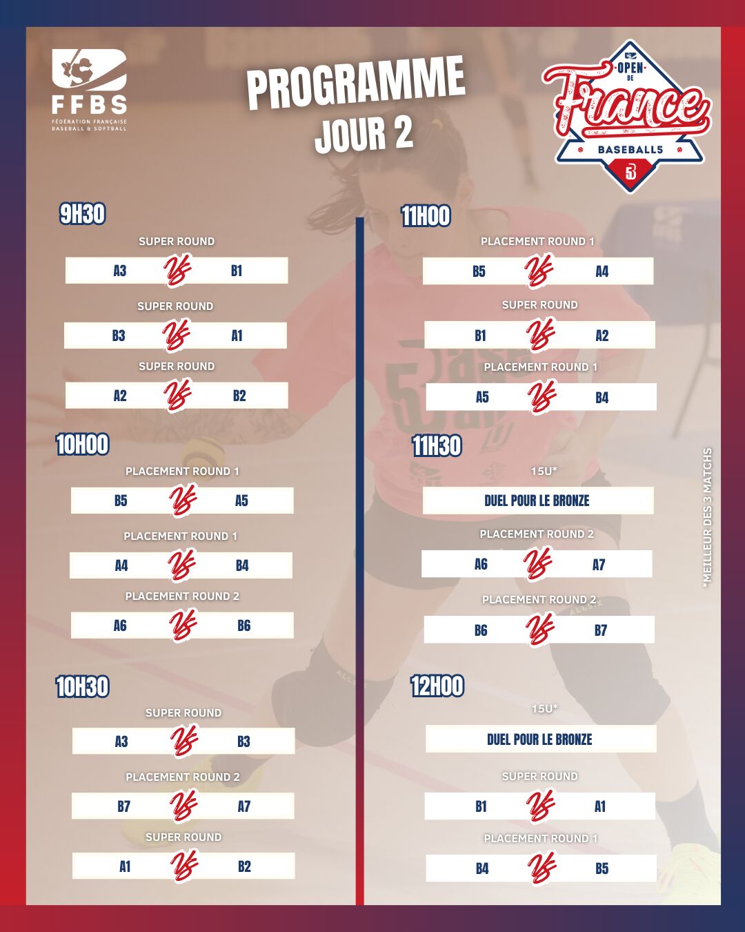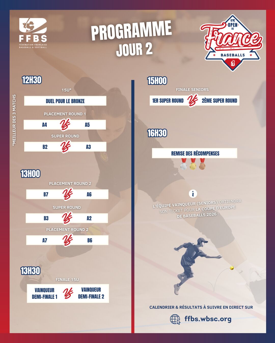 Le calendrier complet, les résultats et le suivi en temps réel sont disponibles sur ffbs.wbsc.org :